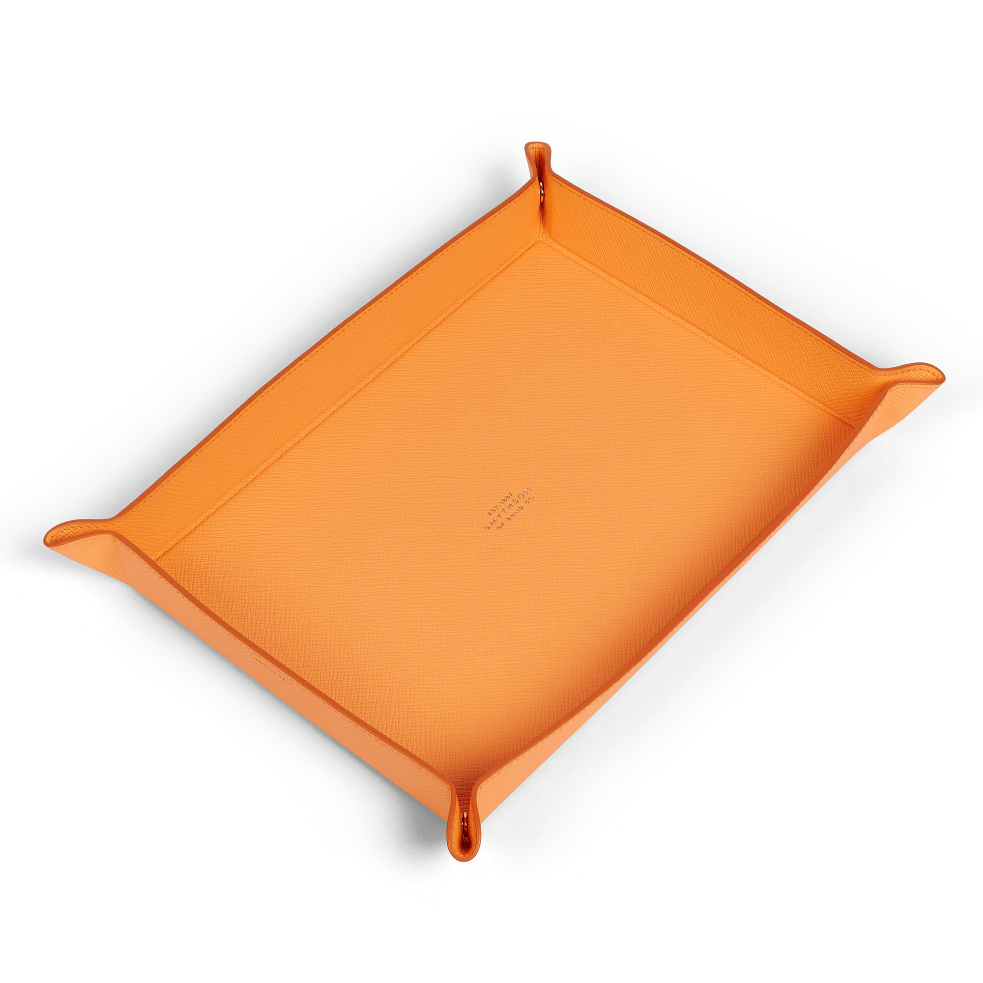 - Light orange large rectangular trinket tray in cross grain calf leather