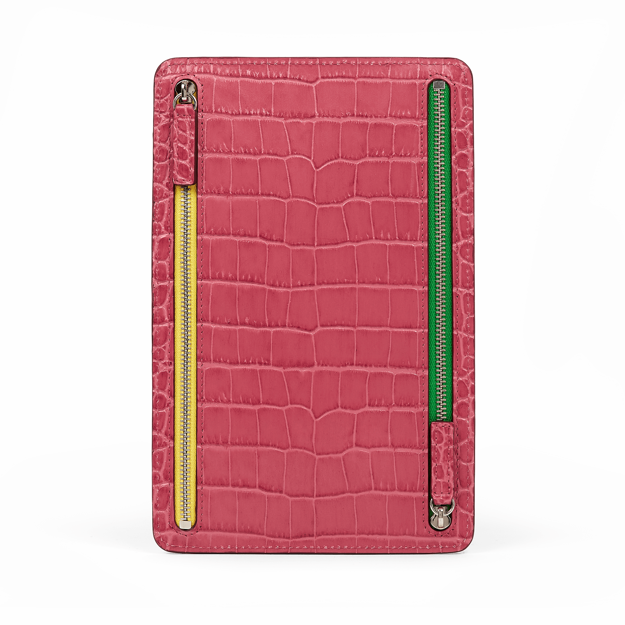 - Raspberry multi-zip case in crocodile-embossed calf leather