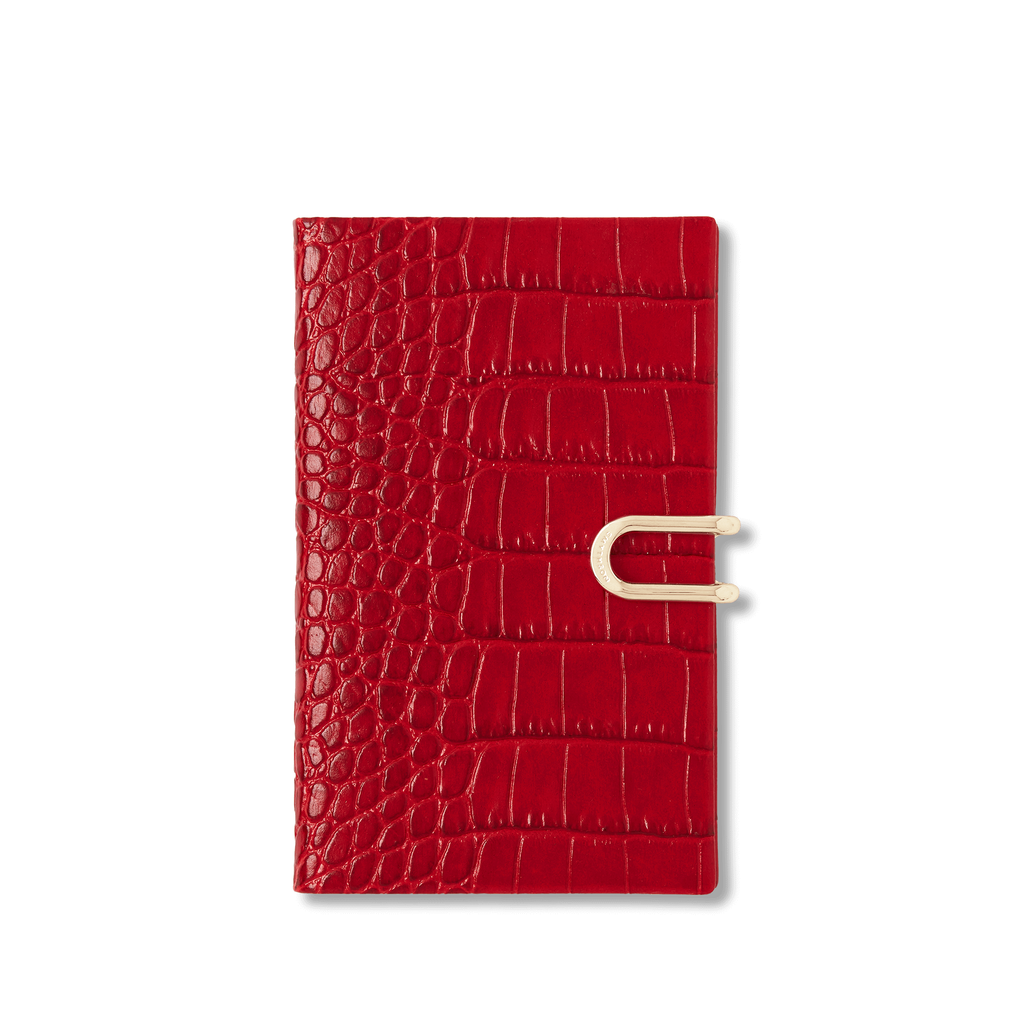- Red mid-year pocket diary bound in crocodile-embossed calf leather