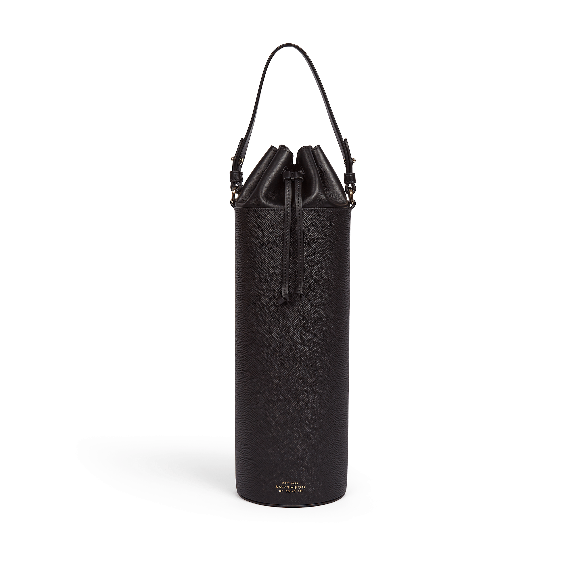 - Borsa tote da vino in pelle di vitello crossgrain nera