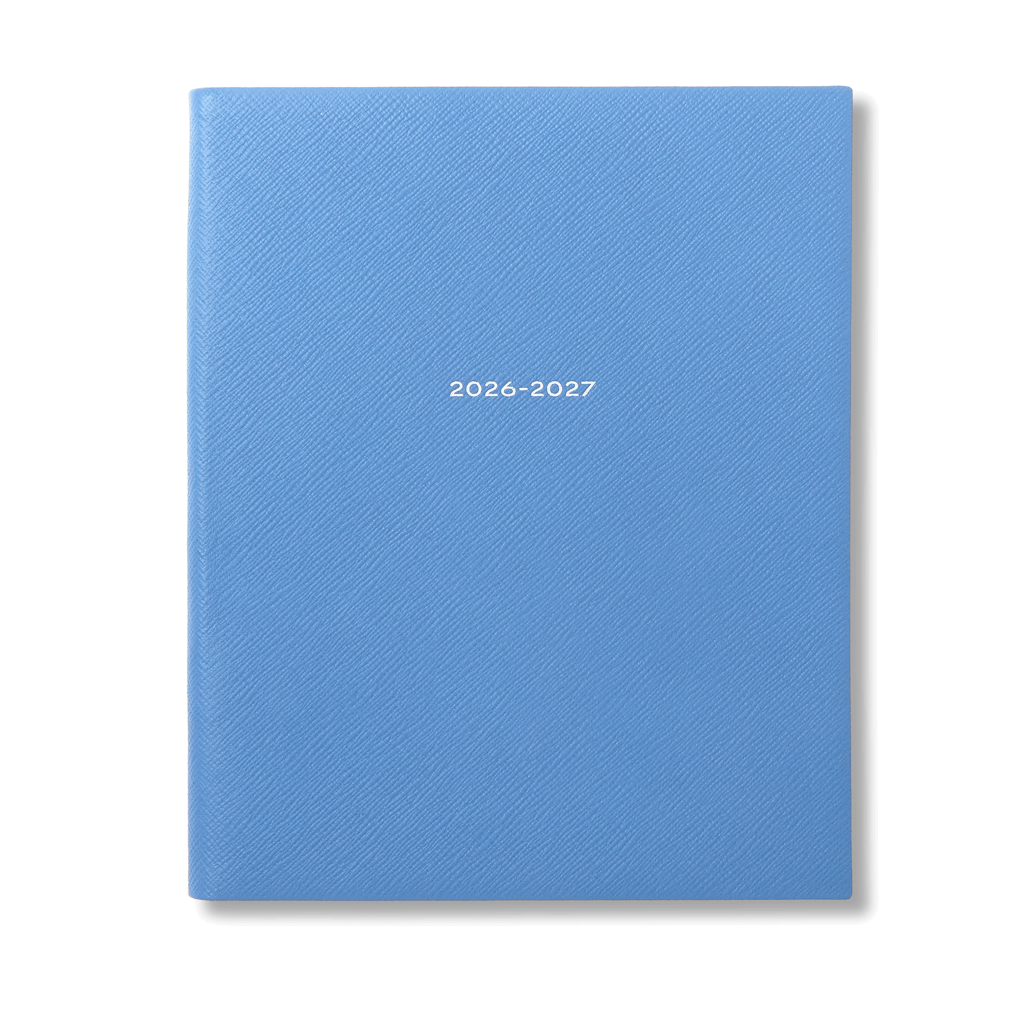 - Nile blue mid-year desk diary bound in cross grain lambskin
