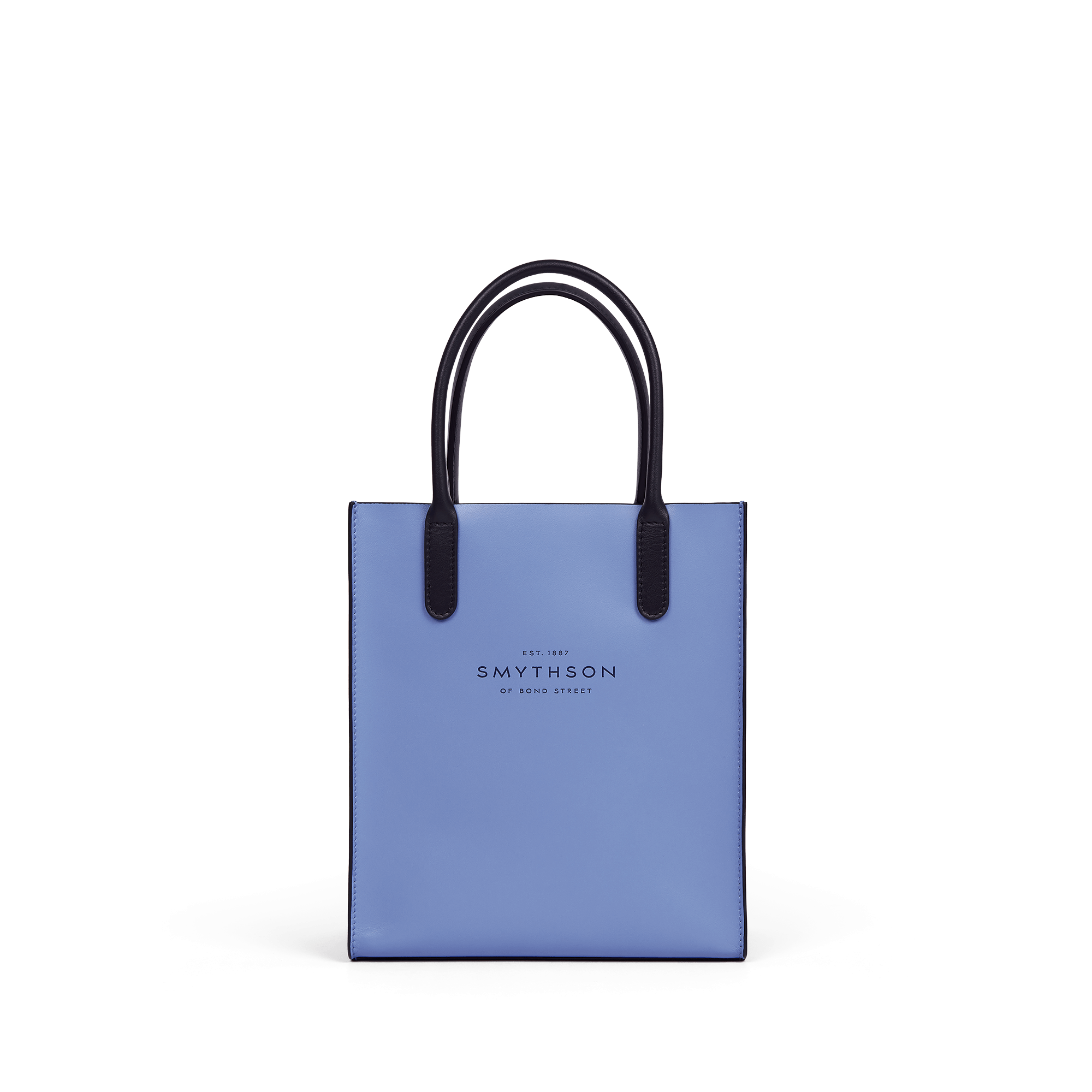 - Smythson Blue Mini Kingly tote bag in Smooth calf leather