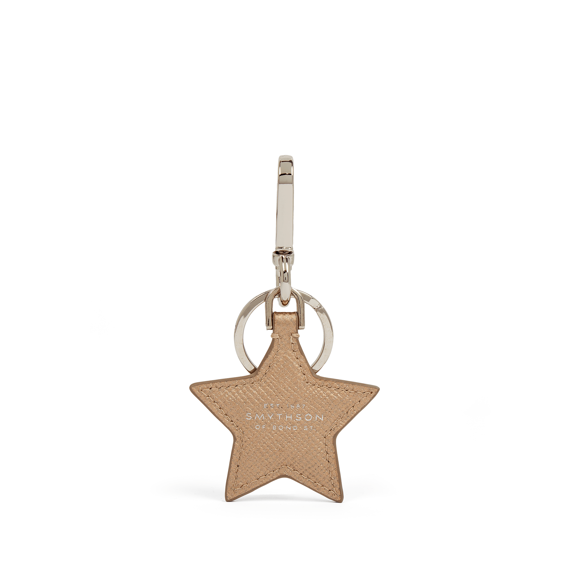 - Bronze star shaped keyring in cross grain calf leather
