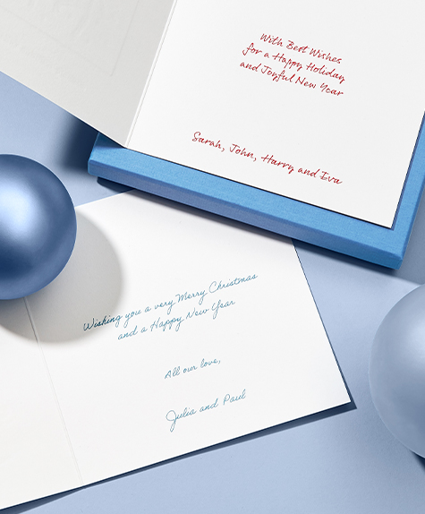 Celebrate the season with a bespoke Christmas card. From whimsical animals to timeless traditions, discover designs for everyone on your list. Exquisitely engraved on our signature White Wove card with silver or gold accents, each comes in a hand-tissue-lined envelope.