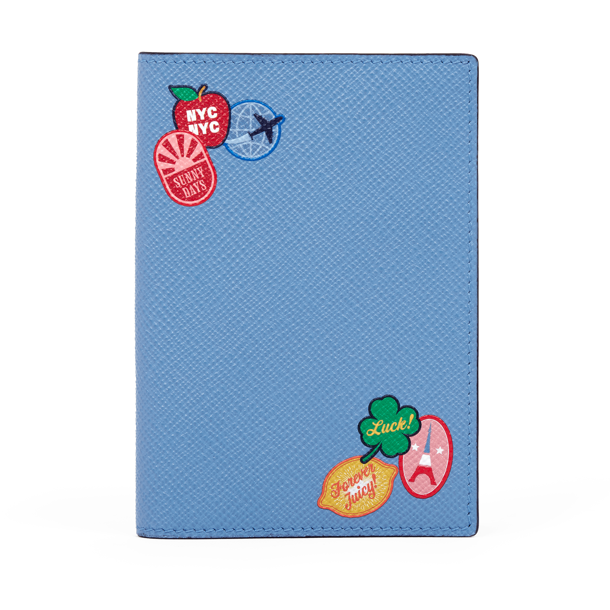 - Passport cover in Nile Blue crossgrain calf leather